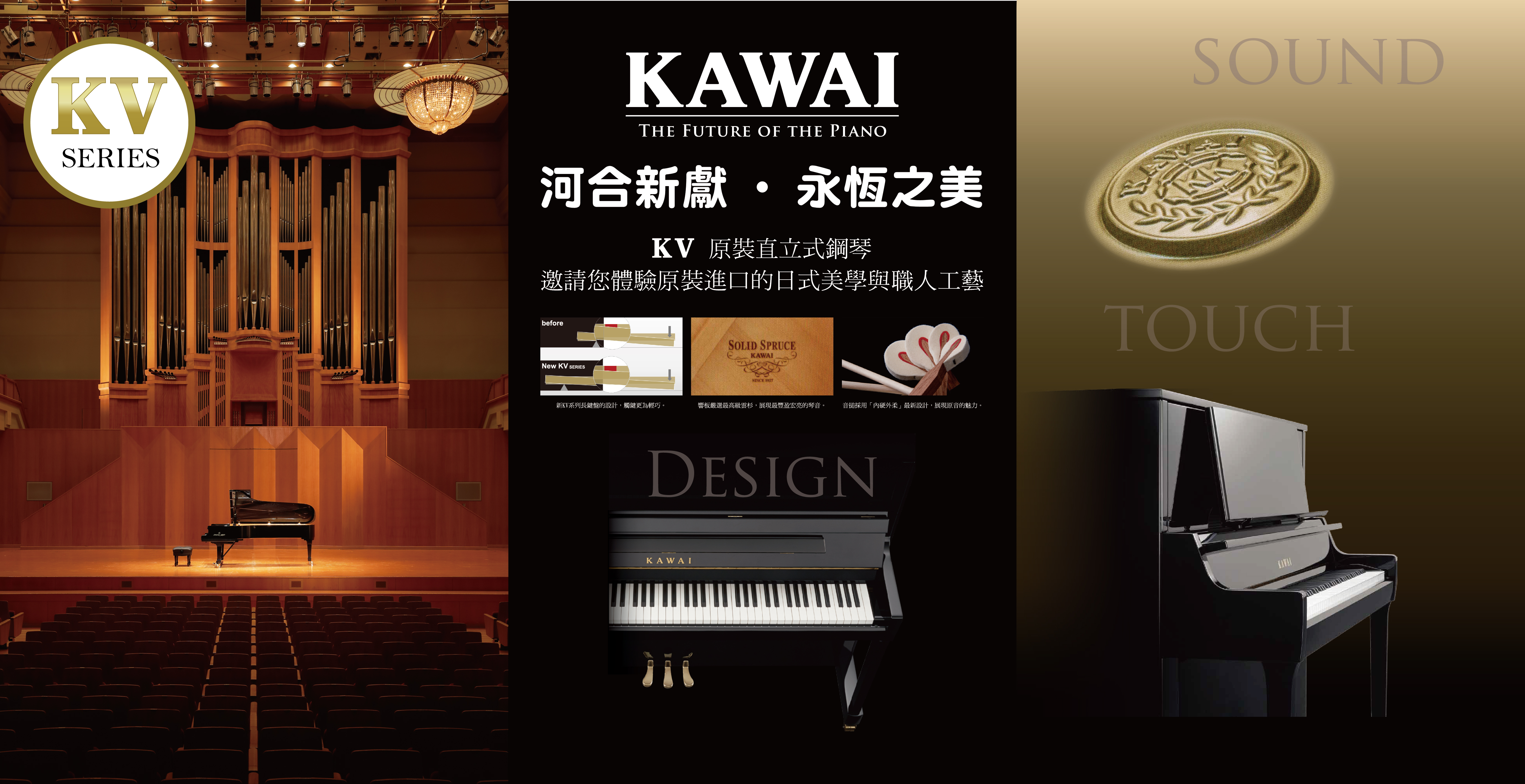 河合直立式鋼琴今年起轉型提升為純原裝進口(K系列及KV系列)