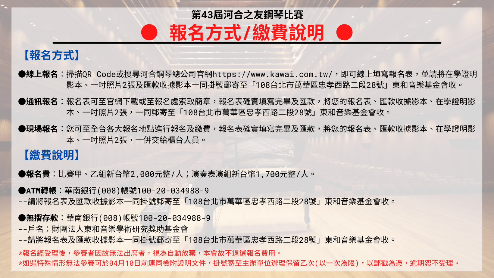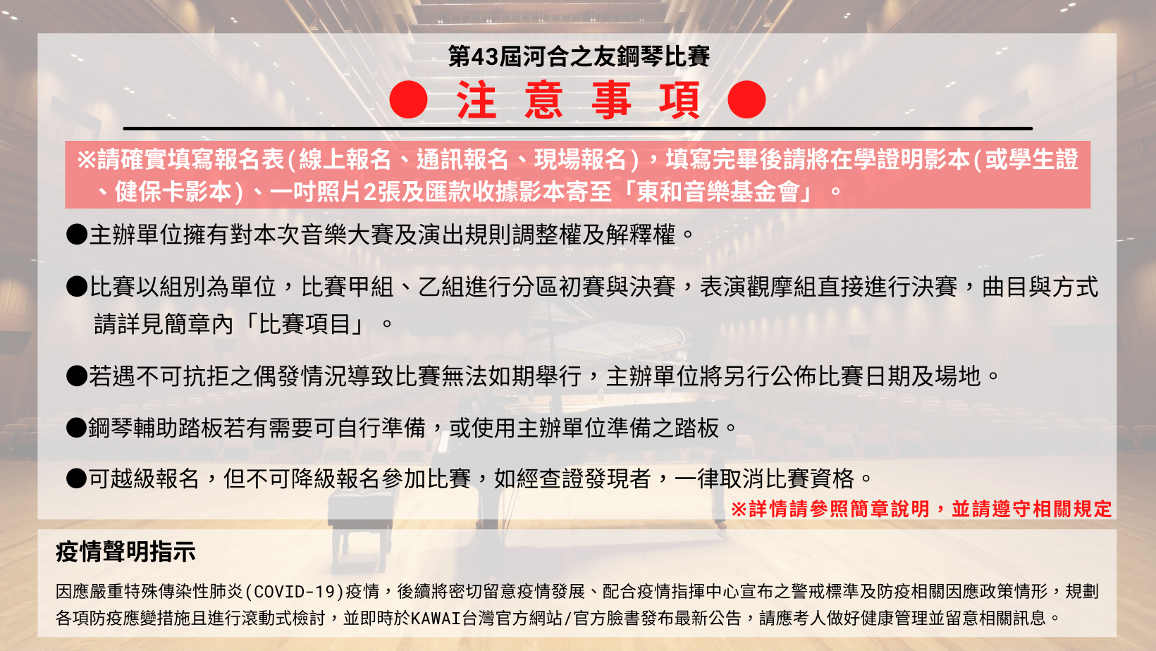 【新制說明】2022年第43屆河合之友鋼琴比賽