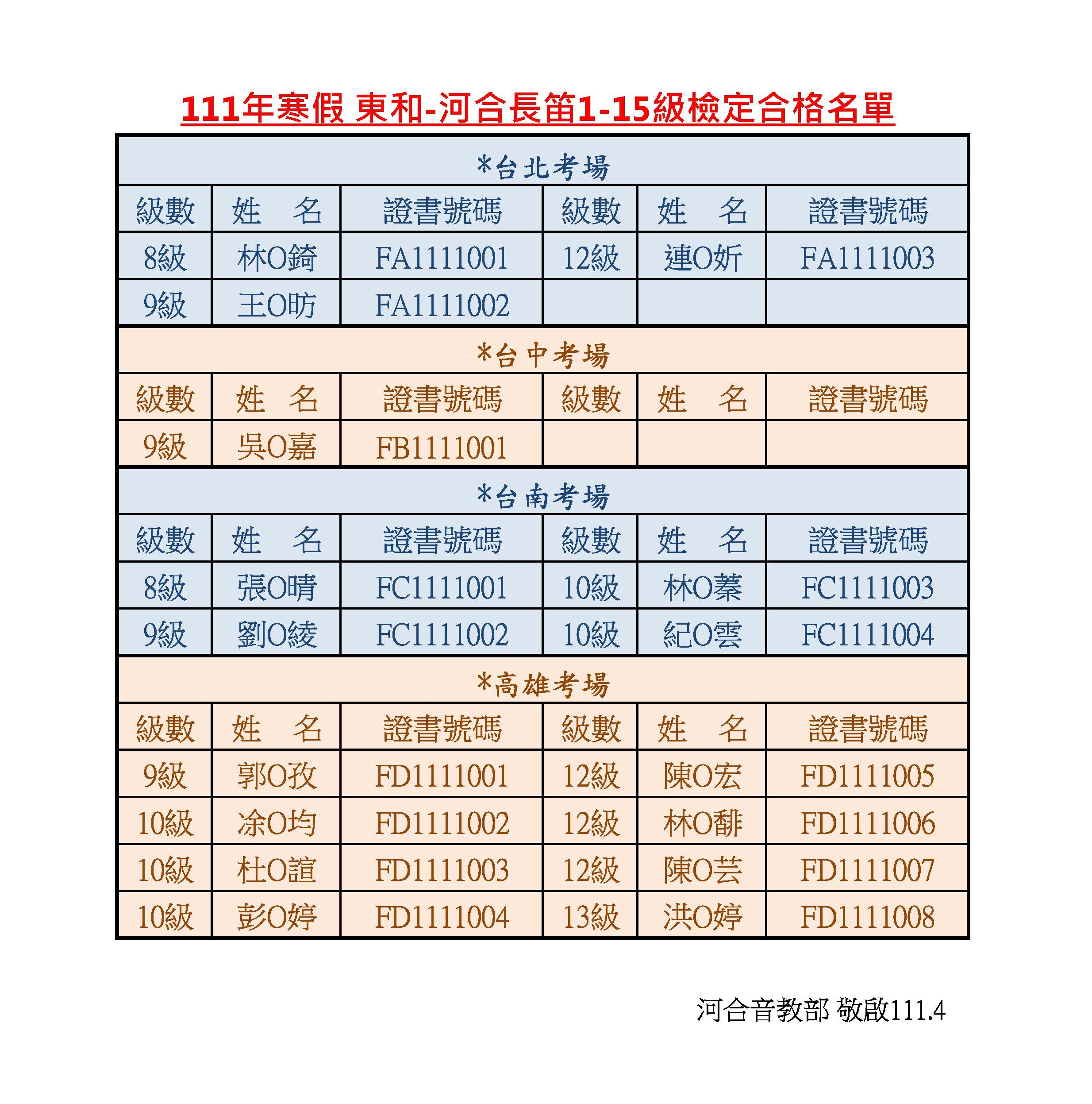 【榜單】2022寒假河合檢定|合格名單-長笛