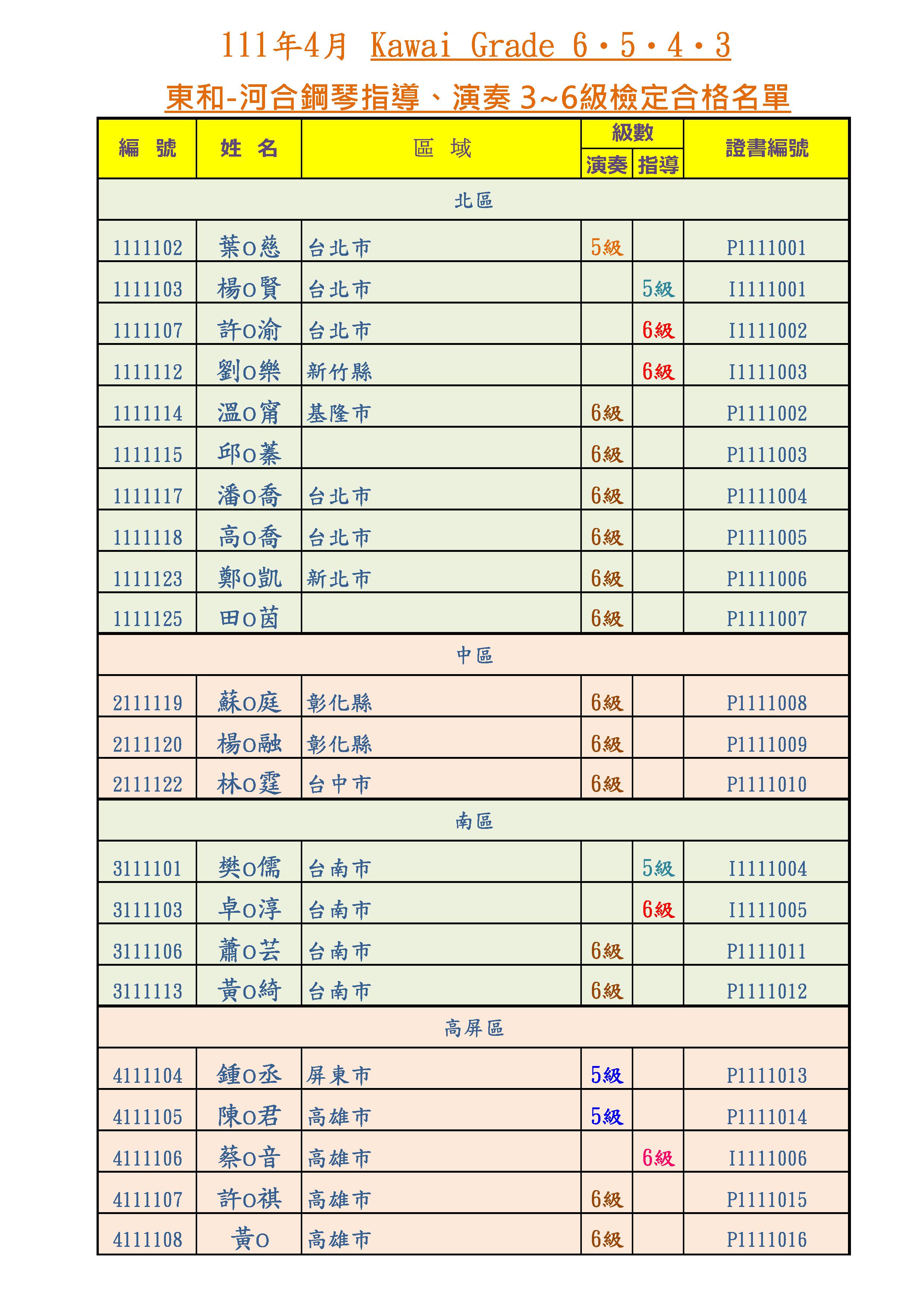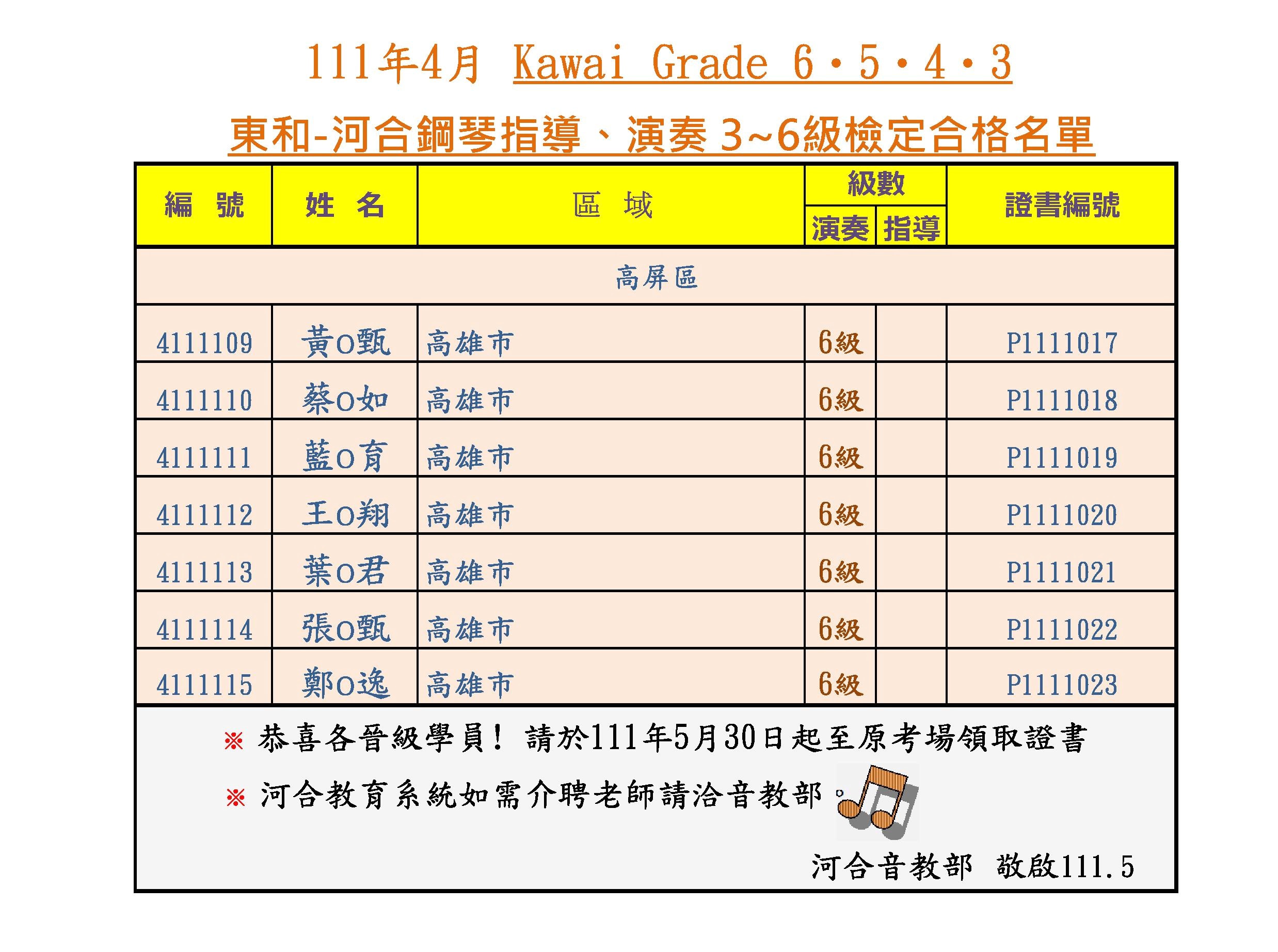 【榜單】2022河合鋼琴指導、演奏級|3-6級合格名單-4月