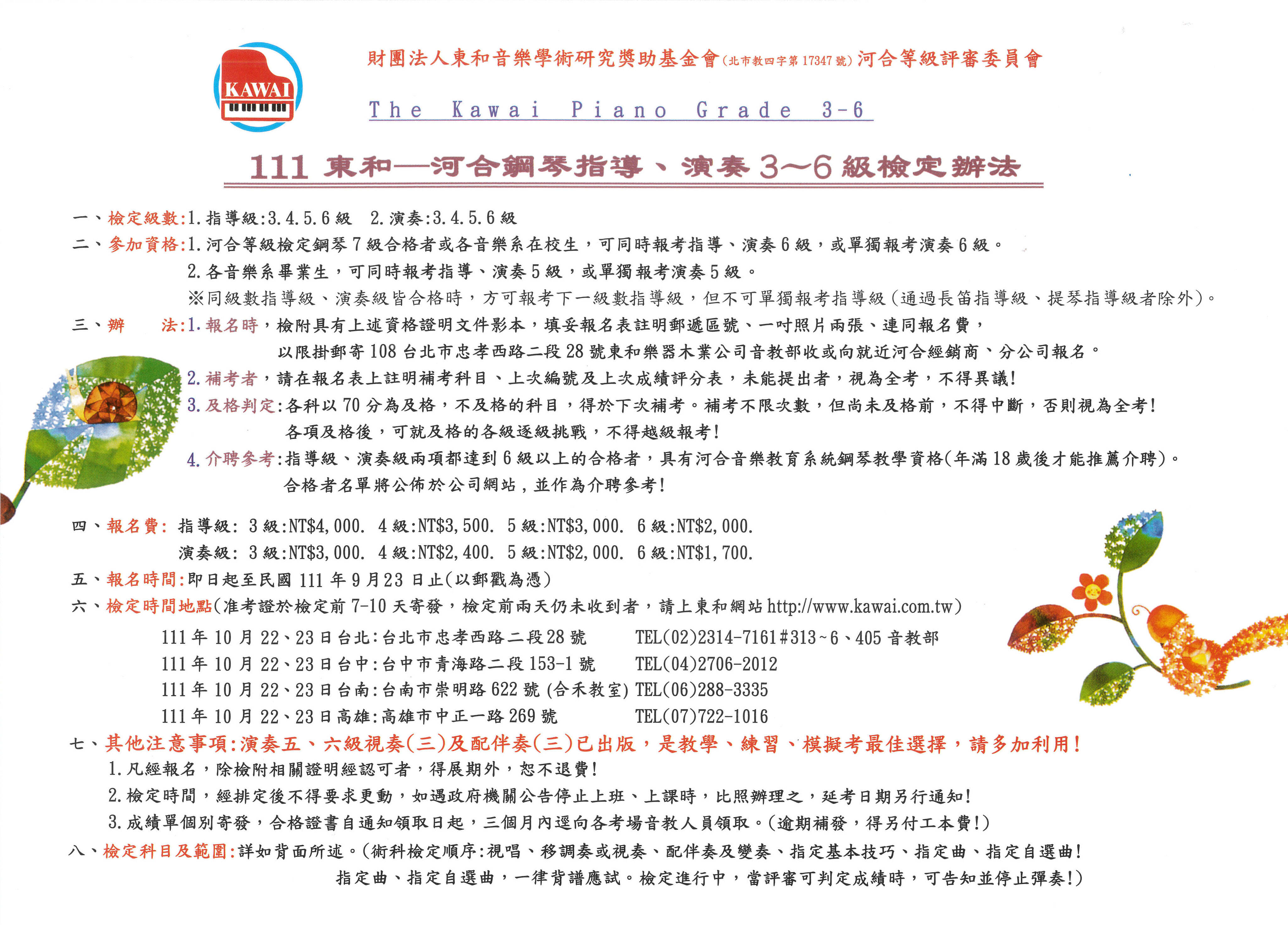 【簡章】2022河合鋼琴指導、演奏級|3-6級檢定辦法-10月
