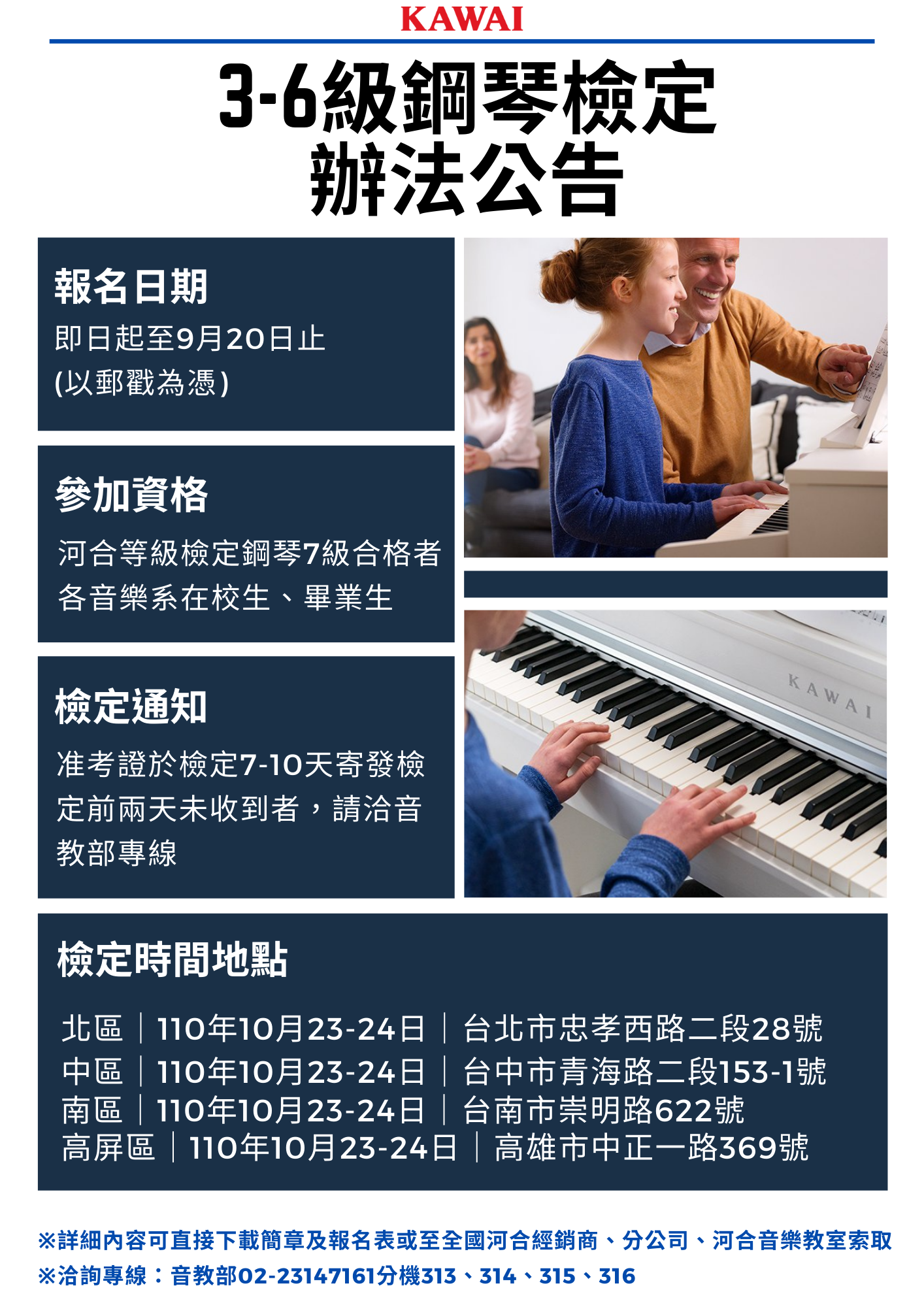 【辦法說明】2021河合鋼琴指導、演奏級|3-6級檢定-10月