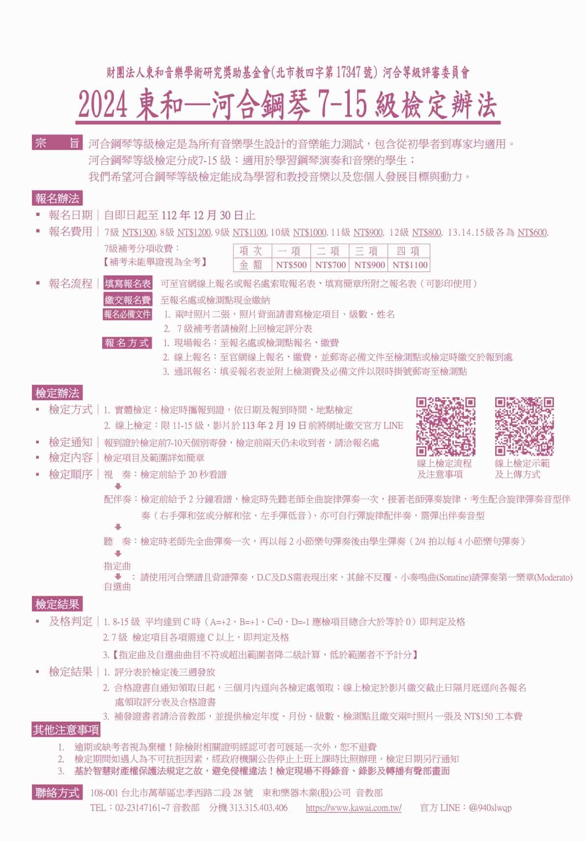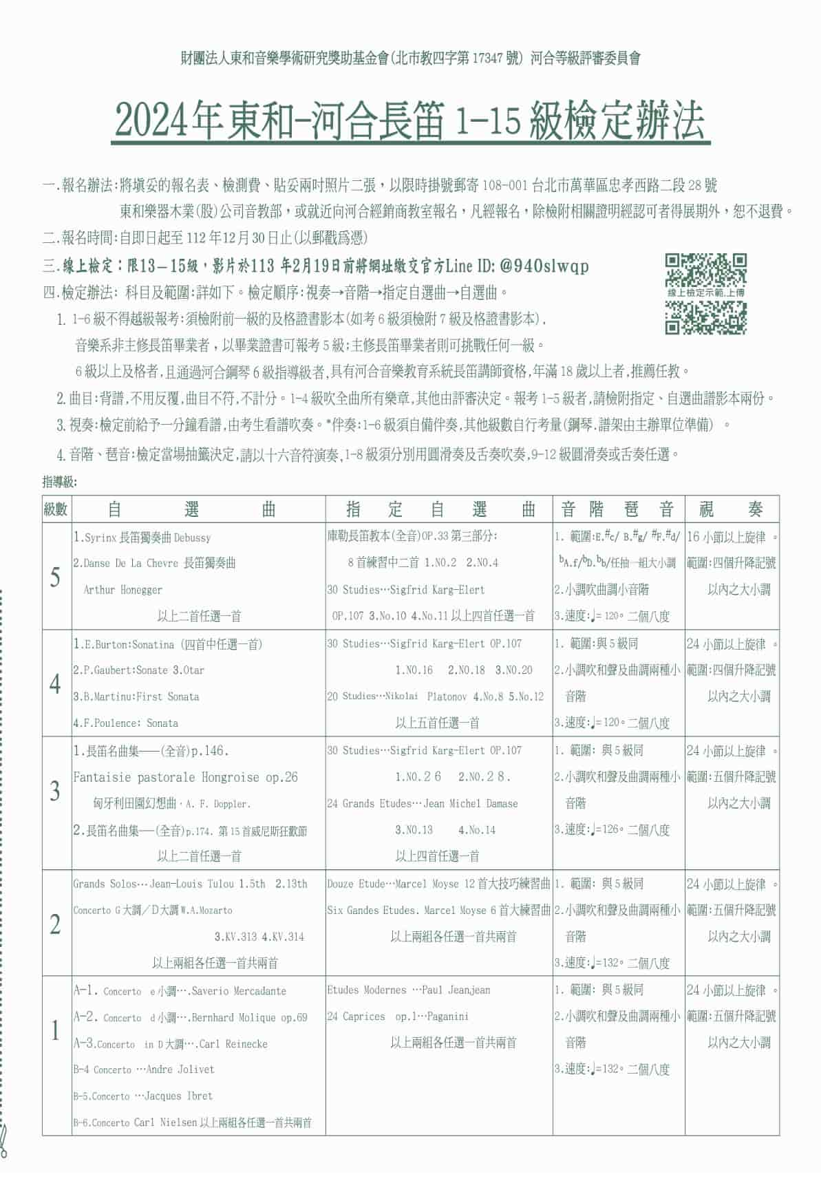 【簡章】2024寒假檢定鋼琴7-15級/長笛1-15級|報名簡章