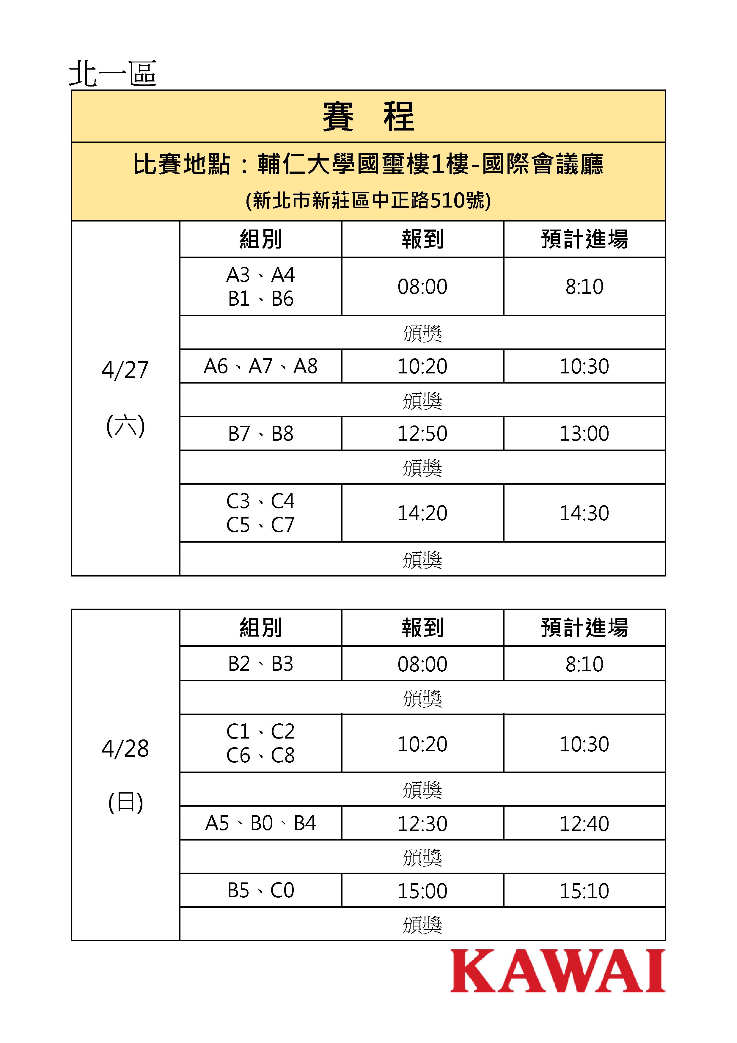 □ 請攜帶個人證件及報到卡準時辦理報到。 □ 比賽A組請於決賽報到時繳交決賽樂譜影本2份,請註明曲目,請勿書寫姓名。 □ 比賽組請準備戶口名簿影本.個人印章,以供領取獎金使用。