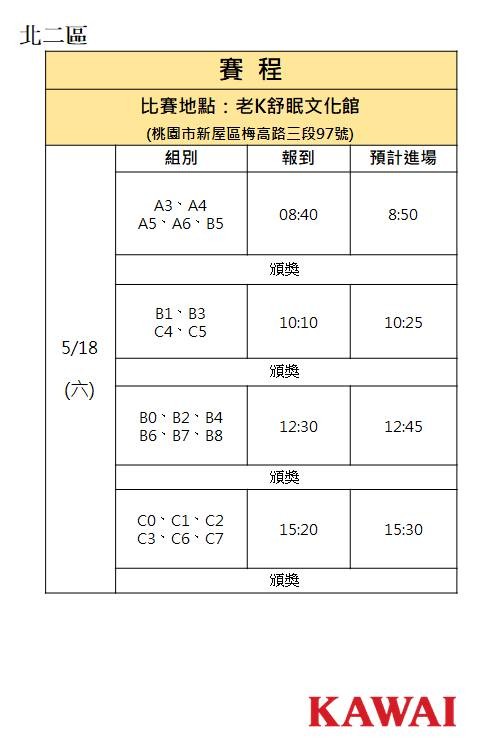 第45屆河合之友鋼琴比賽|北二區|各組賽程如圖