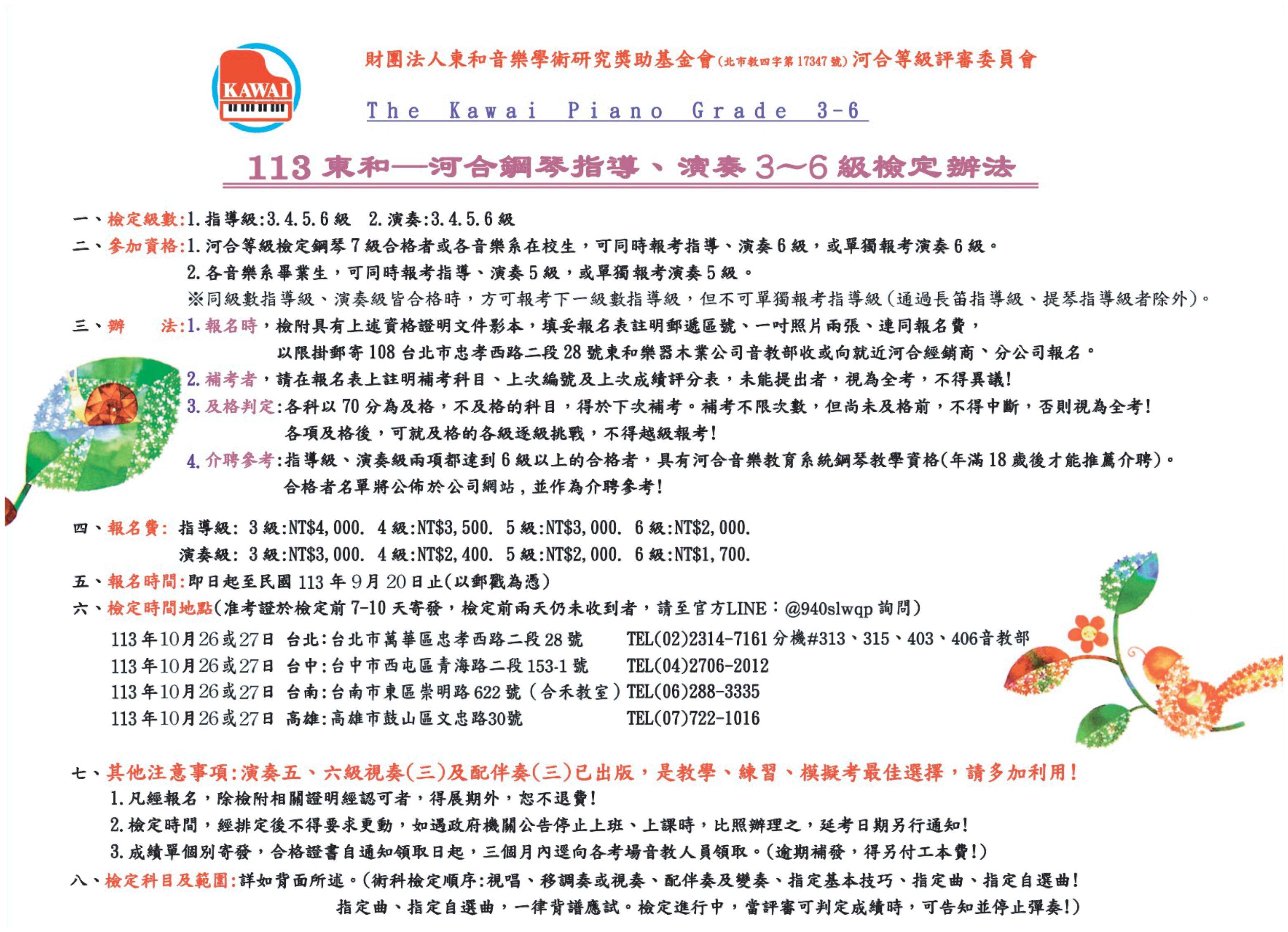 【簡章】2024河合鋼琴指導、演奏級|3-6級檢定辦法-10月