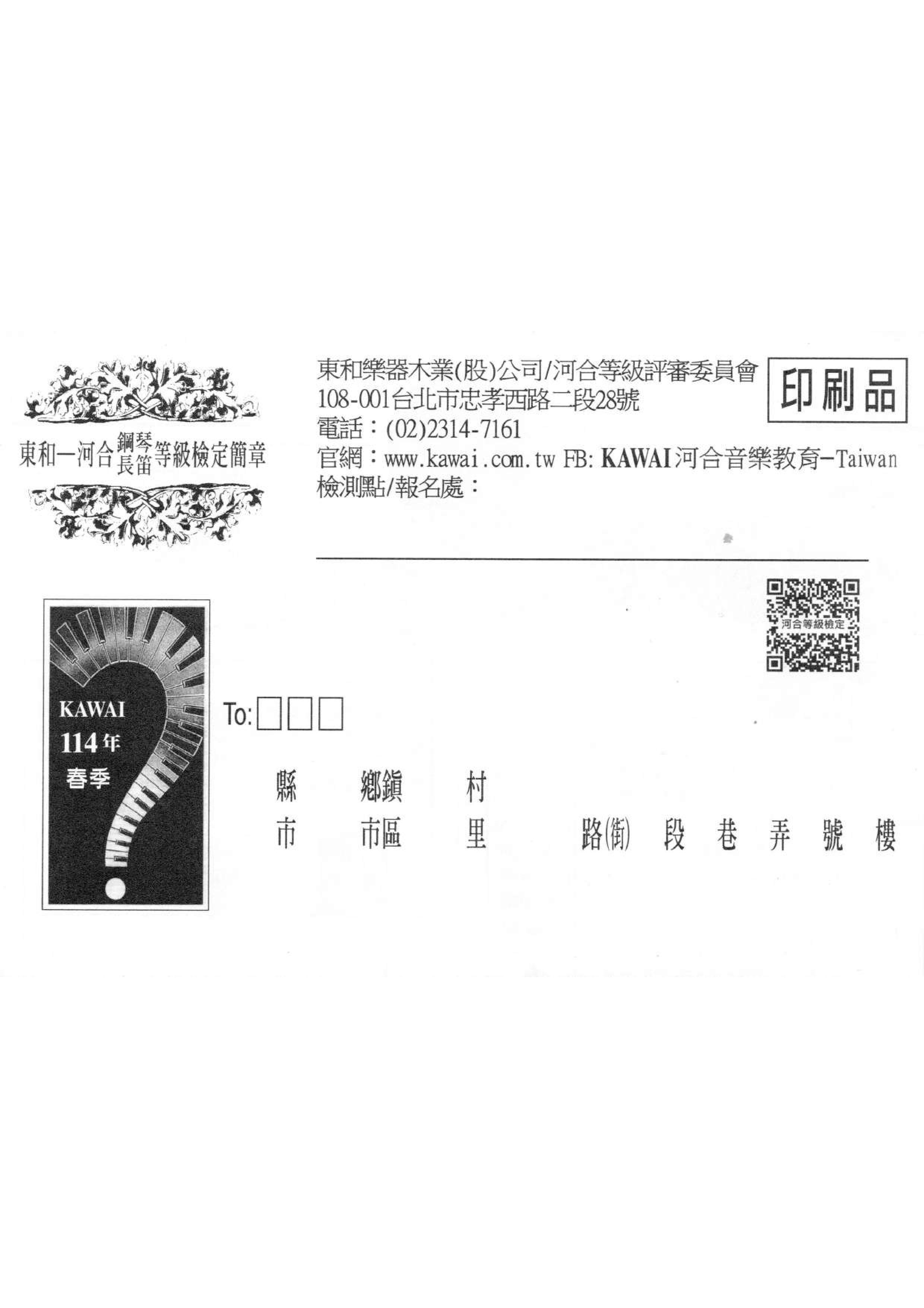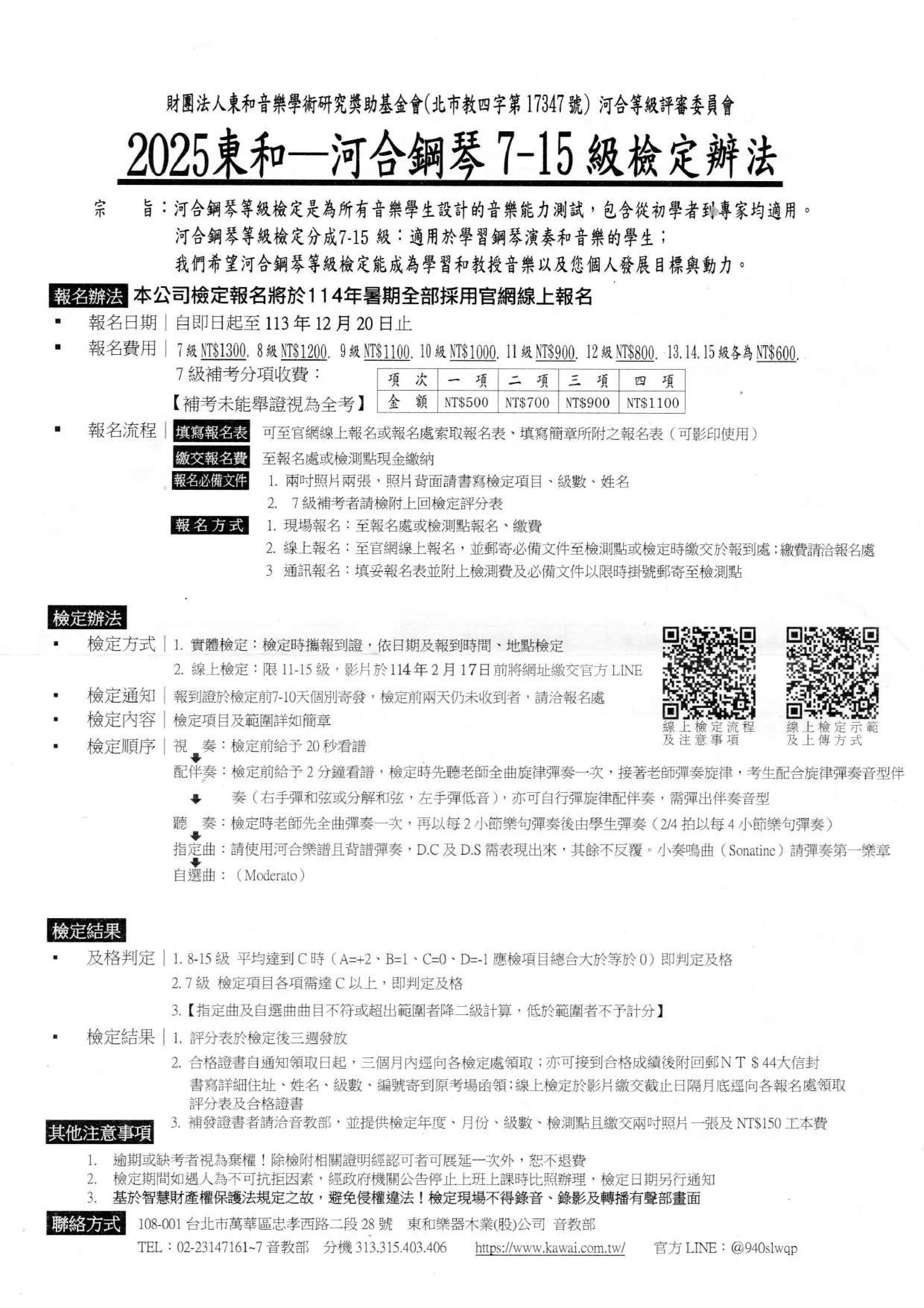 【簡章】2025春季河合鋼琴7-15級檢定|報名簡章