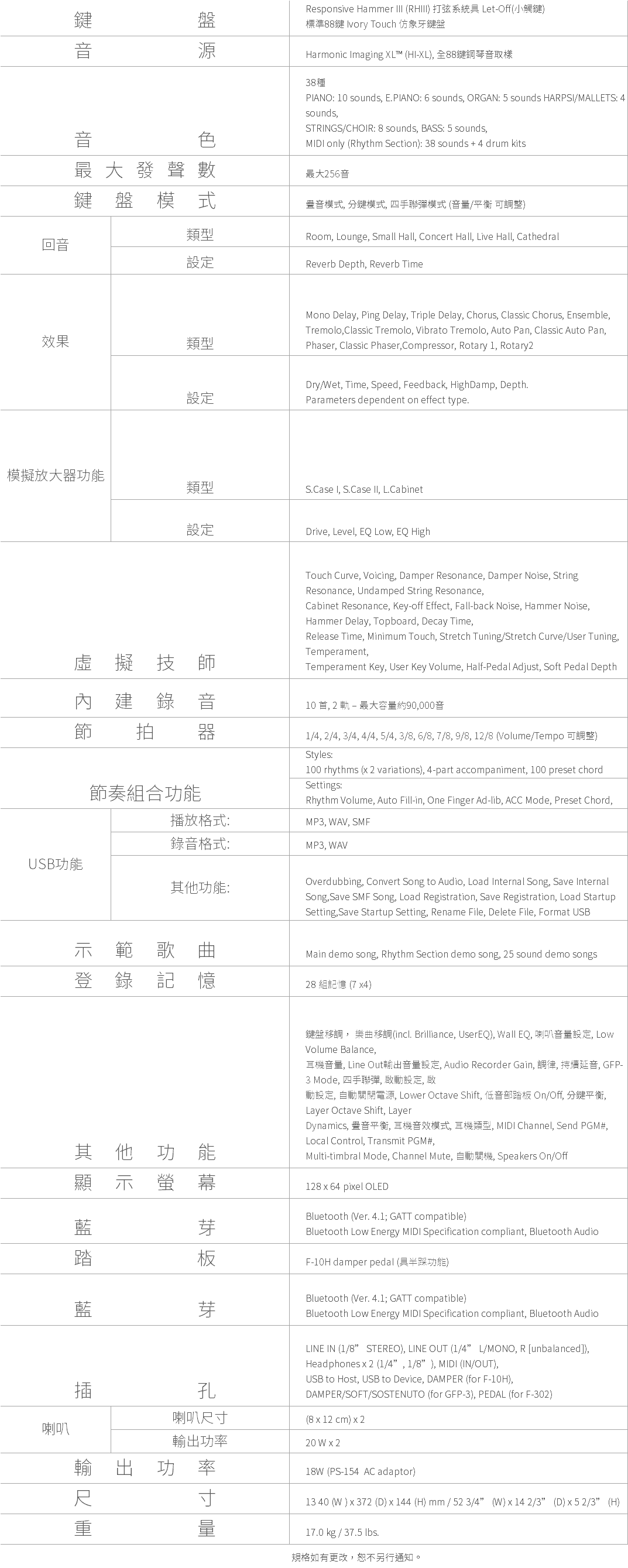 Bluetooth® 的世界商標及標誌為Bluetooth SIG, Inc. 所有之登錄商標, 株式會社河合樂器製作所經許可使用這些商標。