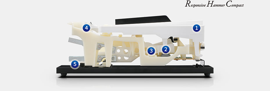 ES120的Responsive Hammer Compact 鍵盤打弦器經過專門研發,可讓便攜式數位鋼琴重現原聲平台鋼琴的獨特觸鍵感。以備受歡迎的RH打弦器設計。其無彈簧技術和堅固的結構可提供一致的向上和向下動作,而改良的緩衝材質有助於降低鍵盤噪音帶來流暢、自然和高真實度的鋼琴演奏體驗。