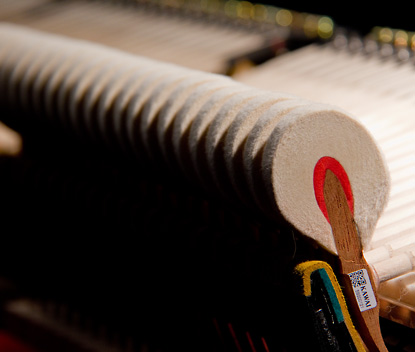 KAWAI嚴選的羊毛氈,講求表面的柔軟及內層堅硬。輕觸鍵是利用音槌表面柔軟的部分產生柔潤的音色,重觸鍵則是利用其內部堅硬的部分發出有魄力的聲響。