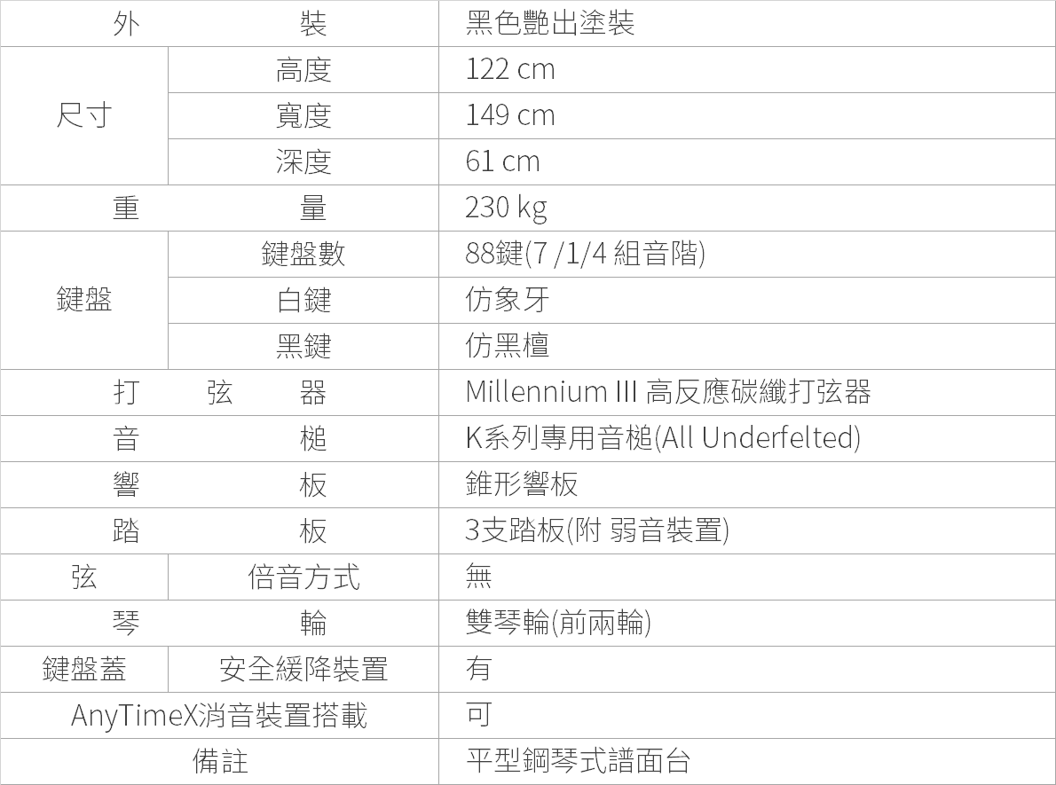 在K系列直立式鋼琴上融入KAWAI平台鋼琴上的鍵盤設計理念。演奏上更加靈活輕巧,可隨心所欲的演奏。