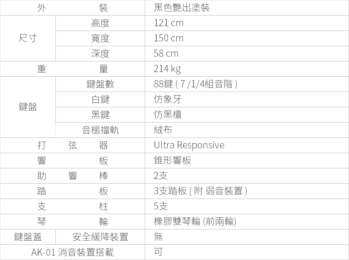 KV系列全機種的棚板及下口棒都採 鋼材強化,琴體更加穩固,更耐用, 不會隨著歲月而發生下陷或變形,演 奏表現更加穩定。
