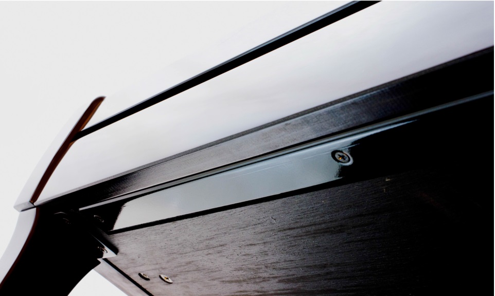 響板擔任了將琴弦的震動轉變為優美 音韻的重要工作。 KV系列的響板是以科學的數據分析及 調律技術人員對聲音敏銳的感知下所設計出每個部位厚度都不同的特殊的錐形響板。在兩者完美的融合下產生出 精緻細膩的天籟美韻。