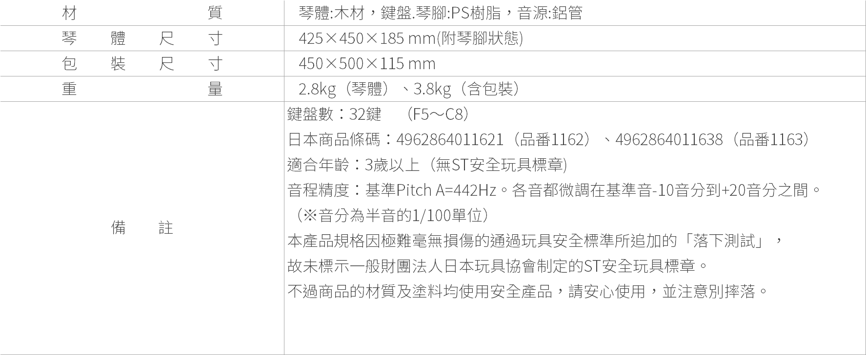 因為是接觸鋼琴的開始,讓您用身體學習記憶正確的音程,並享受演奏樂趣。音程幾乎永久不變。音源是來自鋁管,也是對地球跟耳朵來說最優美自然的純淨聲音。