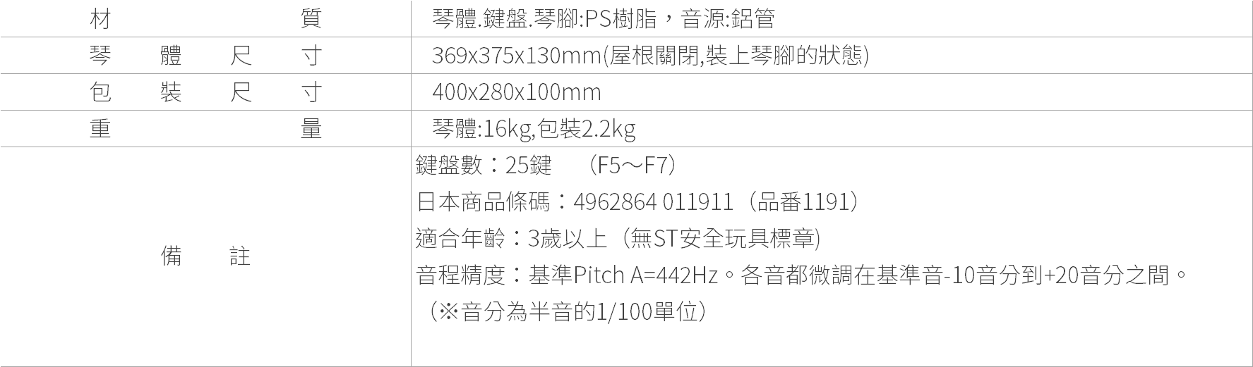 音程,並享受演奏樂趣。 音律幾乎永久不變。音源