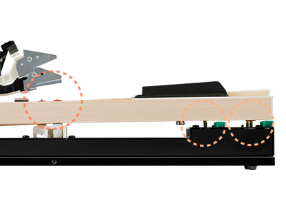 鍵盤進行槓桿動作時作為支點的平衡針,為了不要作動時左右搖晃的鍵前針,還有在這些針之間採用跟平型鋼琴相同材質並可提供適度摩擦量的絨布,實現更加接近真實鋼琴的觸鍵感。